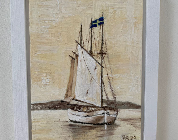 Välkommen in i sjöboden/galleriet där jag en trappa upp i min målarstudio skapar och säljer mina tavlor.